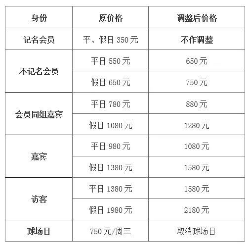 俱乐部的蓬勃发展离不开您一如既往地关心与支持!结合目前市场情况及球场自身发展状况,为了给您创造更好的击球环境,经研究决定,自2022年1月1日起,实行以下措施: