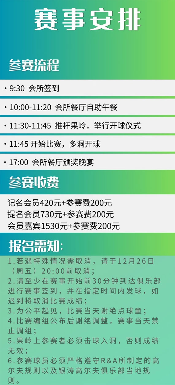 12月28日银涛高尔夫俱乐部冬季会员杯即将开赛,活动仅限100人!预订从速!