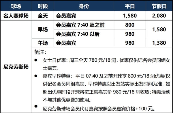 上海美兰湖高尔夫12月份营业安排