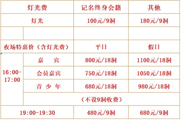 1.以上价格含:果岭、1/2球童球车、更衣柜(送完即止)。