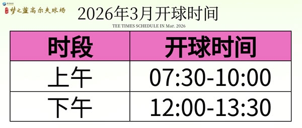 您好!洋河梦之蓝高尔夫球场2026年3月开球时间安排如下: