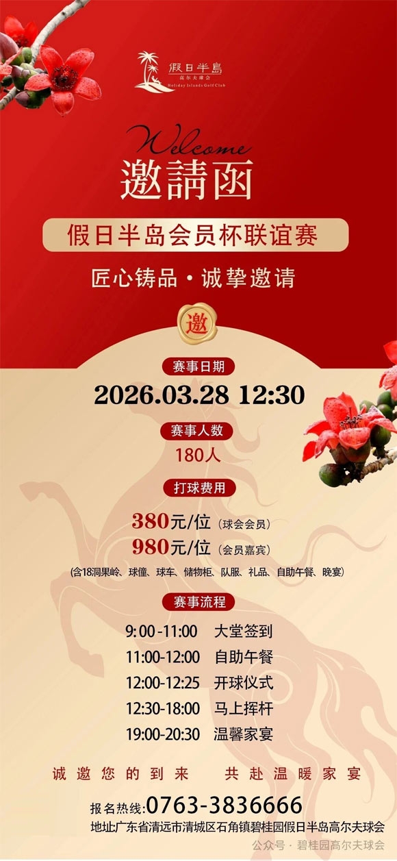 邀请函:清远假日半岛球会“迎春杯”会员联谊赛