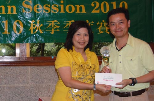 2010年9月4日(星期六)在积尼告斯球场顺利地举行了2010年秋季季度赛。本次比赛共有50多位会员踊跃参加,比赛采用70%差点、18洞定分式的形式进行。