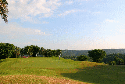 建议攻略:开球瞄准球道右侧的那三棵并排的椰子树左边进攻,绝对不能让球歪到右边的树林里。即使你的开球再好,建议还是不要冒险两杆抢攻果岭,因为你得切过右边树林,而且从这个角度过去果岭纵深变浅,难以停球,同时周围都是起伏的斜坡,如果没停在果岭上,第三杆不好处理甚至会找不到球。强烈建议第二杆稳稳地将球送到球道转弯处,然后再用挖起杆或短铁杆攻果岭。果岭前后距离长,绝对要视旗竿位置算准码数,同时预留滚动距离。