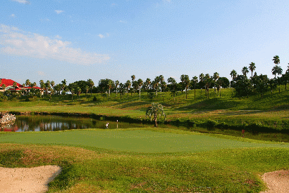 建议攻略:无风的时候要抓足距离打,至于冬天逆风时,得加个20码距离。任何偏左或者打短打长的球,都可能会掉进水池里,所以,距离与方向的拿捏要很小心。果岭中央略有隆起,不过,不管旗位在左在右,最好还是抓果岭中央(甚至偏右点)瞄准,替自己预留较多的失误容忍空间。