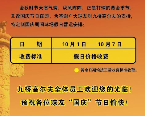 喜迎国庆 2010杭州九桥高尔夫收费标准