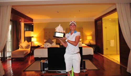 随着本次2010三亚女子公开赛冠军的产生,三亚亚龙湾高尔夫球会以新晋冠军李安·佩斯名字命名的第十间冠军套房也宣告诞生了!