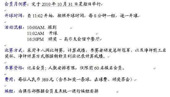 天马乡村高尔夫俱乐部会员月例赛10月31日举行