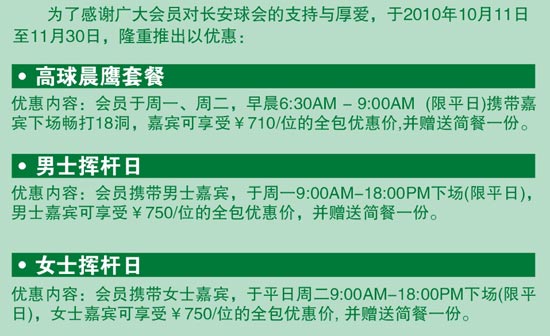 东莞长安高尔夫球乡村俱乐部推出优惠活动