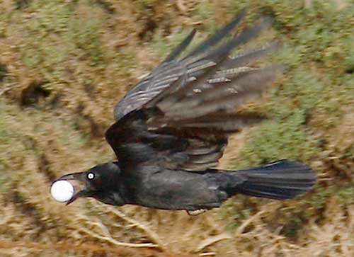 在球场数不清的野生动物居民中,这只乌鸦栖息在帕5的五号洞附近,最爱做的事,就是偷球手的小白球。