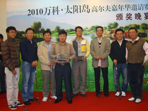 几个小时后的颁奖晚宴上,更加的阳光普照,常常6人或7人同时得奖,尤其是抽了幸运奖的球员--具幸成,竟然大公无私的将幸运物品taylormade2010年美国公开赛的限量版球包现场转让给了年龄最小,却打了总杆冠军的未来之星--柳在炫,让我们敬佩球员们为胜利而专注的打球精神,更为竞技后的那种平静对待胜利品后的淡定而感动,同时球员们也感谢万科带给他们一次次的惊喜,也感谢太阳岛球场带给他们一次次的快乐!