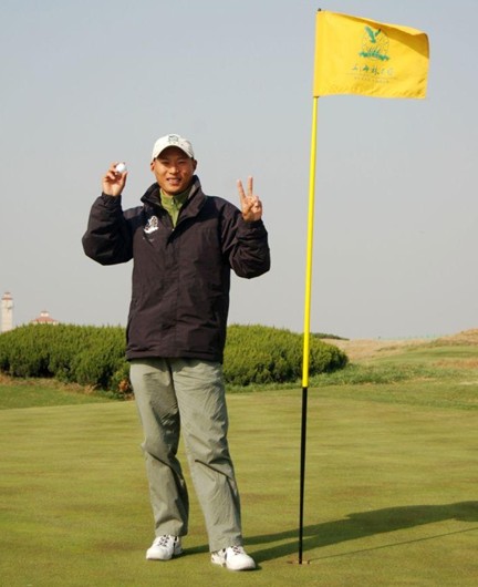 承孝荣Rod在培训球童时在12月1日在8号洞打了信天翁球。据他回忆,当天他用1号木打出了240码的球,接着用3号木继续打出了240码,球直接由长草滚入洞中。承孝荣在林克司工作已经7年了,他说,他已经打过2次一杆进洞,幸运一直伴随着他。 如果您也希望有他的运气,欢迎您致电林克司预约他作为您的球童。