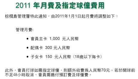 广东惠州棕榈岛高尔夫2011年月费及球童费调整
