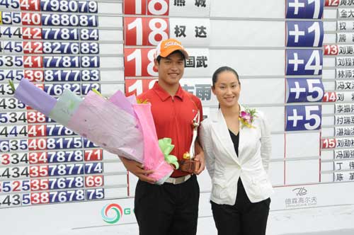 2010中国体育博览会系列活动,“洋浦杯”海南金椰子高尔夫球公开赛,经过三天54轮的激烈竞争,日前在美视五月花高尔夫球会圆满收杆,来自全国共120余名选手参加了比赛,最终海南地区代表队,技高一筹,获得了团队优胜奖,广东小将黄永乐,凭借最后一轮的上佳发挥,将“金椰子”冠军奖杯揽入囊中。