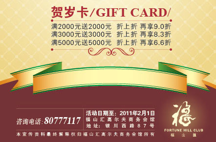 青岛福山汇高尔夫商务会所推出新年贺岁卡