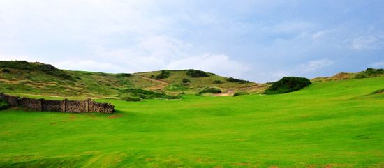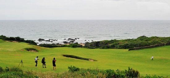 世界顶级36洞山崖海景高尔夫球场,依山傍海,山势起伏、果岭弥香,世界一流的高尔夫球场,就在家门口,打造以山崖海滨高尔夫为特色的养生休闲度假胜地,将于2011年中投入使用球场引进的是世界最新的草种,超级海滨草,并且在发球台、球道和果岭都用同一种草。
