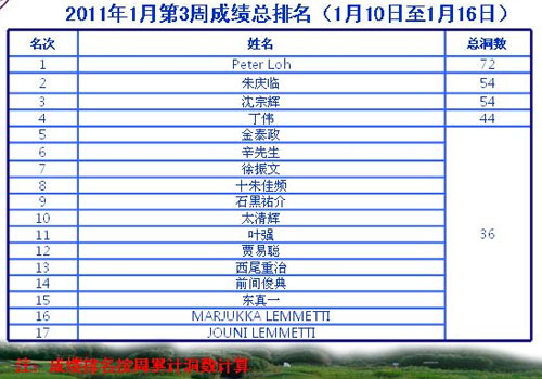 上海滨海高尔夫冬季铁人赛2011年1月第3周成绩