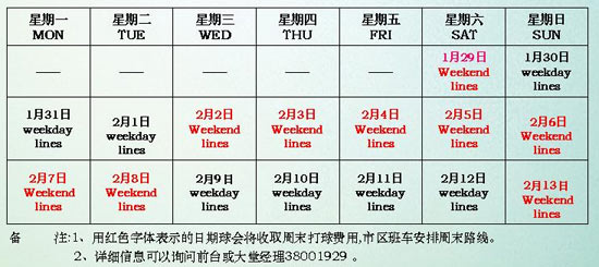 上海滨海高尔夫2011春节期间市区班车安排