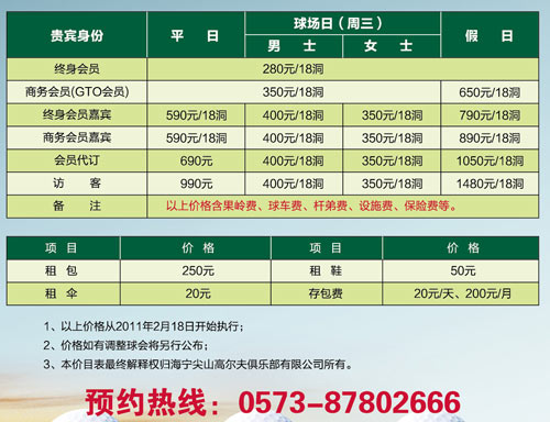 海宁尖山高尔夫俱乐部击球价格调整公告