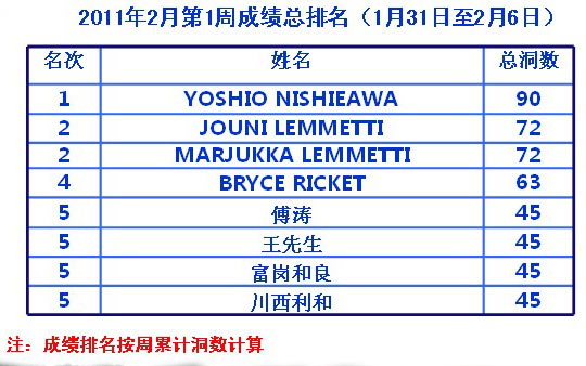 上海滨海高尔夫冬季铁人赛2月份第1周排名