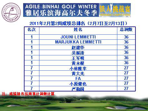 上海滨海高尔夫冬季铁人赛2月第2周总排名