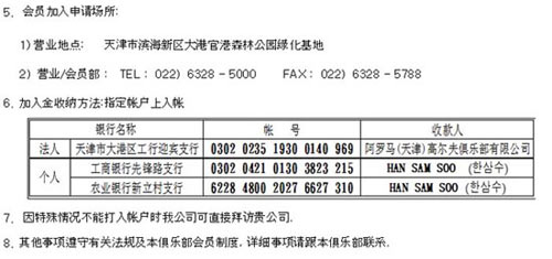 天津阿罗马高尔夫俱乐部2011年会员加入指南