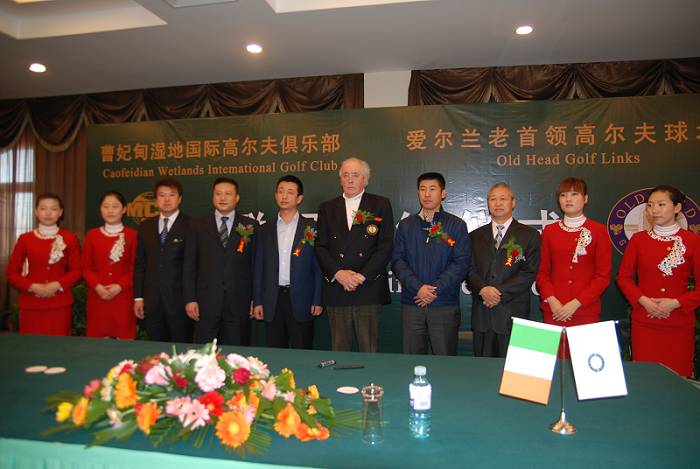 2011年3月9日上午10:30分,曹妃甸湿地国际高尔夫俱乐部与爱尔兰老首领球场的结盟签约仪式在曹妃甸湿地高尔夫俱乐部多功能会议厅举行。爱尔兰老首领球场(Old Head Golf Links)总裁约翰·沃康纳先生(Mr.John O’Connor)、曹妃甸湿地国际高尔夫俱乐部总经理姜恒先生分别代表各自球场签署了联盟协议。曹妃甸湿地国际高尔夫俱乐部是河北省唯一的一家与国外球场结盟的球场,也是爱尔兰老首领球场在中国选定的首家合作球场。业内资深媒体《高尔夫度假》、唐山市电视台、唐山晚报、唐山广电报、唐山电台等多家媒体对此次联盟仪式进行了报道和专访。