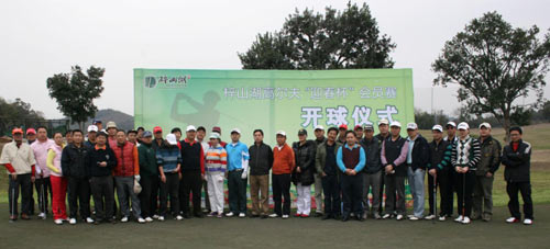 中午12:20分,在球场练习果岭举行了开球仪式。在开球仪式上,梓山湖国际高尔夫俱乐部总经理赵卫平发表了热情洋溢的致辞,他表示各位来宾、各位球手:本次赛事是2011年首场俱乐部会员赛,在此衷心感谢过去的一年各位对俱乐部的支持与厚爱。新的一年,俱乐部继续完善各项设施。4月,练习场遮阳棚将建好并对外开放;另外,俱乐部的新九洞球场将正式启动。软件设施上,今年是俱乐部的管理质量年,我们将继续提升服务,继续举办各项赛事,推出各项活动。在接下来的管理与服务上,希望各位献计献策,提出宝贵的意见。我也有信心带领好团队,俱乐部管理及会员服务定会上升一个新层次。