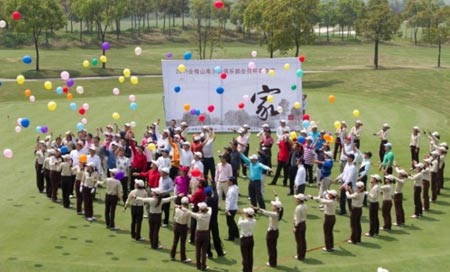 开球仪式之际,球会为表达对会员们的热爱之情,体现会员与球会一家温馨之景,也为体现“会员之家”走向第二个美好春天,特意让俱乐部可爱的球童们围成一个甜甜的爱心,并邀庆祝有的会员及嘉宾用行动填满这颗爱心之家,团聚一起,手持彩球,让色彩飞舞,让梦高翔。飞舞、绚丽的彩球预示着此界会员杯赛将取得圆满成功,会稽山“会员之家”将越办越好!