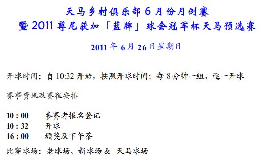 上海天马高尔夫乡村俱乐部6月份会员月例赛报名