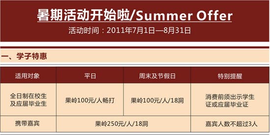 西海岸高尔夫推出暑期活动 平日果岭100元畅打