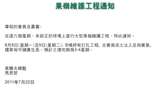 广东惠州棕榈岛高尔夫球场果岭维护工程通知