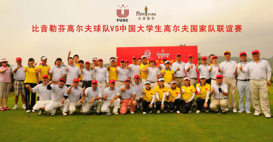 2011年7月26日,比音勒芬高尔夫球队VS中国大学生国家高尔夫球队联谊赛在东莞峰景高尔夫球会举行。 中国大学生高尔夫国家队选手们在8月17日大运高尔夫项目正式比赛前迎来一次实战训练,国家队选手们一盏身手捍卫了未来之星的荣誉以7.5分的成绩问鼎团队冠军,这也为他们出征即将举行的第26届世界大学生(夏季)运动会鼓足了勇气。
