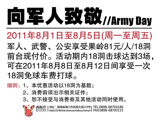海南西海岸高尔夫球会“八一”节优惠活动