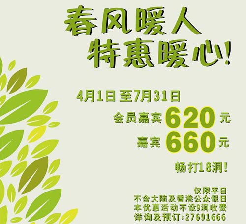 620元/18洞 碧海湾高尔夫会员击球优惠延期