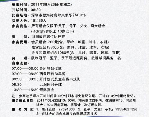 碧海湾高尔夫首届“亲子同心”挑战赛开始报名