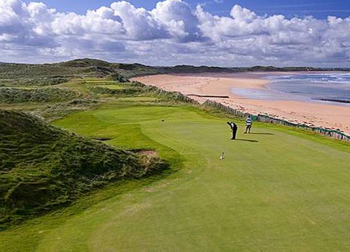这座爱尔兰五星级酒店的多恩贝高尔夫球场由英国高尔夫公开赛双料王格雷格·诺曼设计,设计中沿袭了其“尽力保持自然的理念”。该球场范围内新月形的海滩以及百年沙丘延绵1.5英里,从果岭、球道以及16洞和18洞的发球台可以饱览大西洋的美景。
