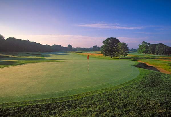 Chicago G.C. (上图是球场第2号球洞) 地址:Wheaton, Ill 设计师:C.B. Macdonald (1894) 球道长:6,846码,标准杆:70杆 难度系数:65.75