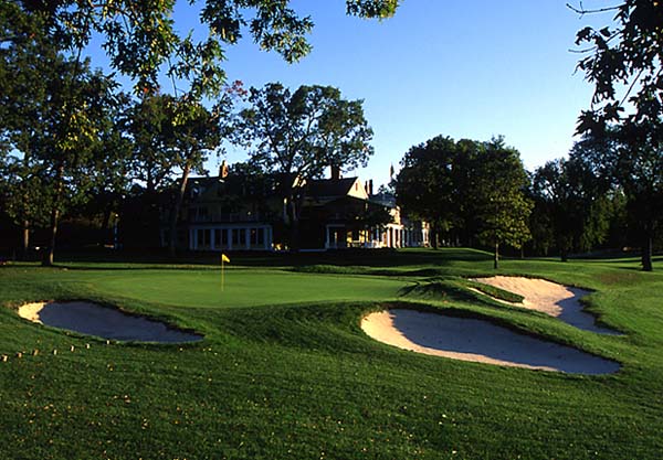 The Country Club (上图是球场第18号球洞) 地址:Brookline, Mass. 设计师:Willie Campbell (1895)、Alex Campbell (1902) 球道长:7,033码,标准杆:71杆 难度系数:65.85