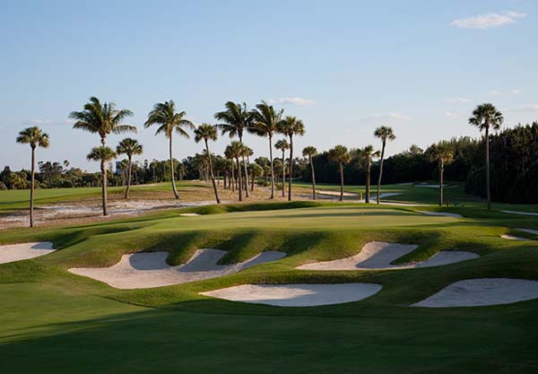 Seminole G.C (上图是球场第5号球洞) 地址:Juno Beach, Fla 设计师:Donald Ross (1929) 球道长:6,836码,标准杆:72杆 难度系数:66.17