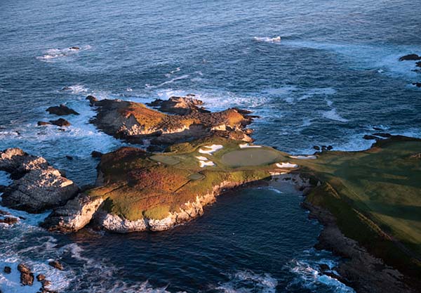 Cypress Point Club (上图是球场第16号球洞) 地址:Pebble Beach 设计师:Alister Mackenzie (1928) 球道长:6,525码,标准杆:72杆 难度系数:69.00