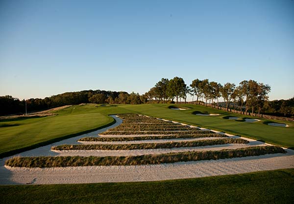 Oakmont C.C. (上图是球场第3号球洞) 地址:Oakmont, Pa 设计师:Henry Fownes (1903) 球道长:7,255码,标准杆:71杆 难度系数:69.01