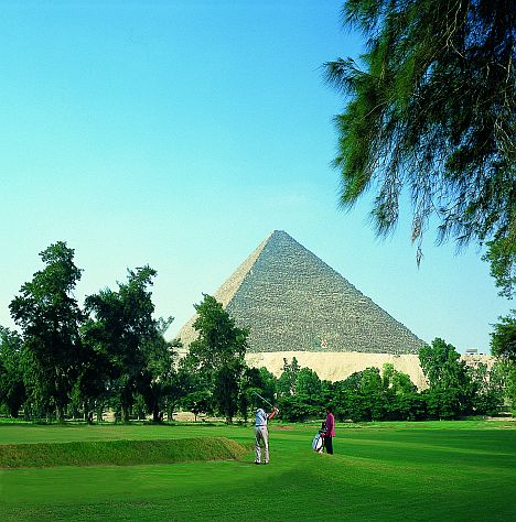 当我背着球包,真正踏上米娜宫(Mena House)球场的一号发球台上时,我被惊呆了,天呀!高大的胡夫金字塔就在眼前,如此近在咫尺。很多团友都迫不及待地拿起相机,哗啦啦地狂按快门,直到听见领队说“别急,这座球场的所有洞都能看到金字塔的”,大家方肯罢休。