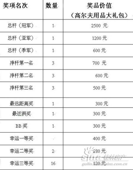 此次高尔夫球赛设置了多个奖项,比赛获胜者可获得价值120元-2500元不等的高尔夫用品大礼包。