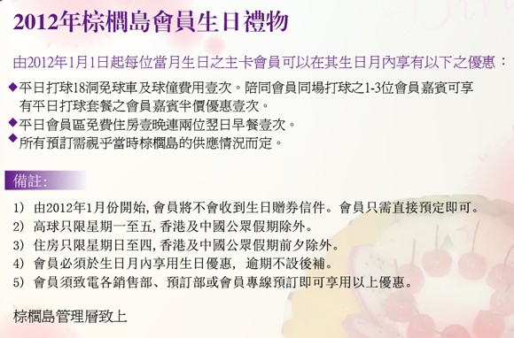广东惠州棕榈岛高尔夫2012年会员生日优惠