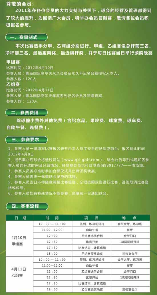 山东青岛国际高尔夫第四届会员杯赛4月10日上演
