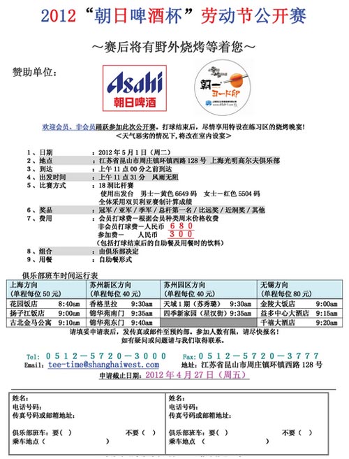 上海光明高尔夫2012劳动节公开赛5月1日开赛
