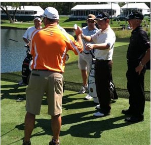 在本周的美国高尔夫球巡回赛-球员锦标赛前,平日里协助职业球员左右的球僮们也表现了一下他们不俗的球技,在本周三于17号洞有岛果岭的标志性一洞举行了一年一度的球僮最近旗杆赛,Robert Garrigus的球僮海伦尼Robert Henley胜出。