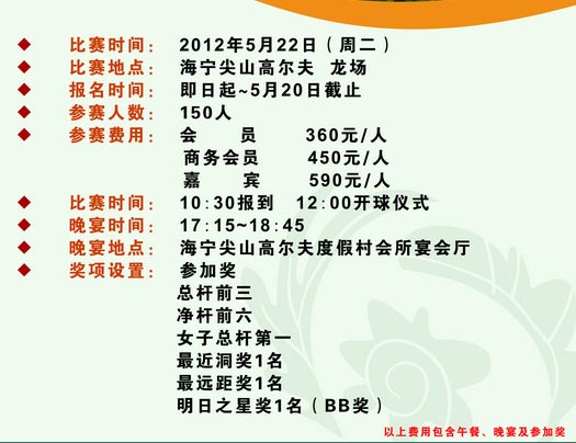 浙江海宁尖山高尔夫俱乐部夏季会员杯赛报名