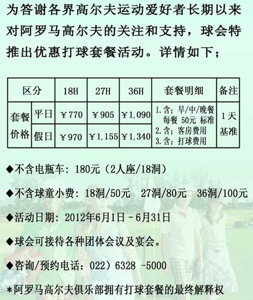 平日770元 天津阿罗马高尔夫优惠打球套餐